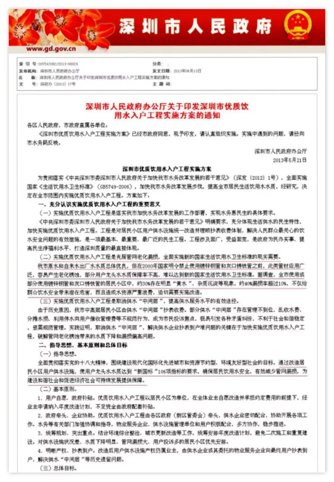 深圳擬投巨資啟動優(yōu)質飲用水入戶工程